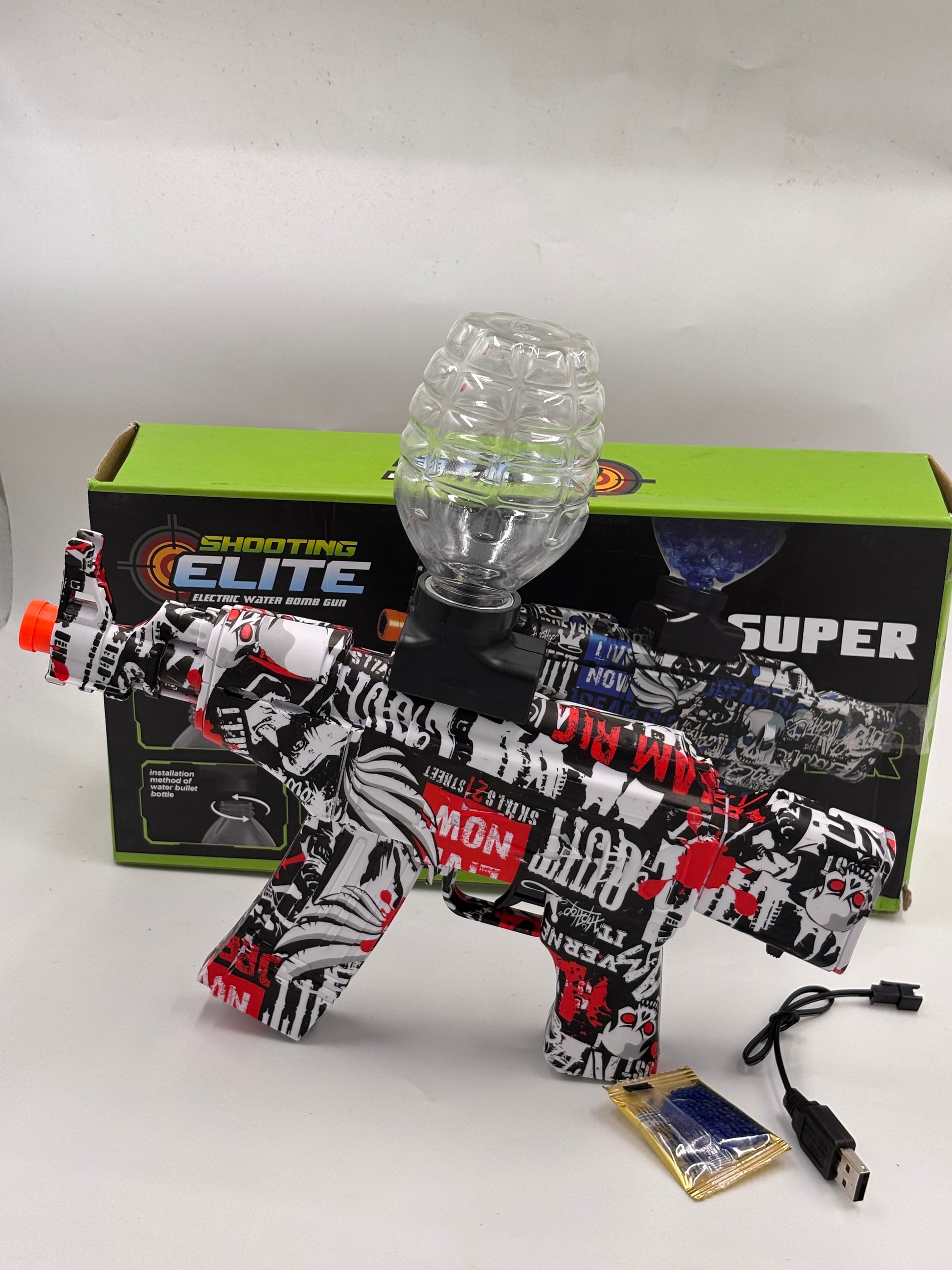 Unleash your power with the Shooting Elite Electric Water Blaster Gun — the ultimate toy for action lovers! Designed with a bold graffiti-style body, this blaster features automatic shooting and a rechargeable battery for endless fun. Just load the water beads, attach the bottle, and fire continuously with high speed and accuracy!